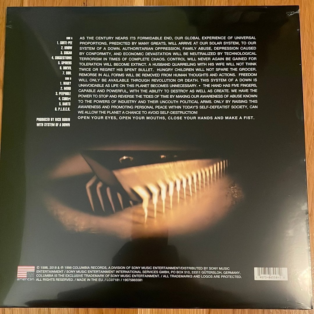 System of a Down självbetitlade debutalbum på vinyl. Ett måste för fans av bandet och samlare av vinylskivor.